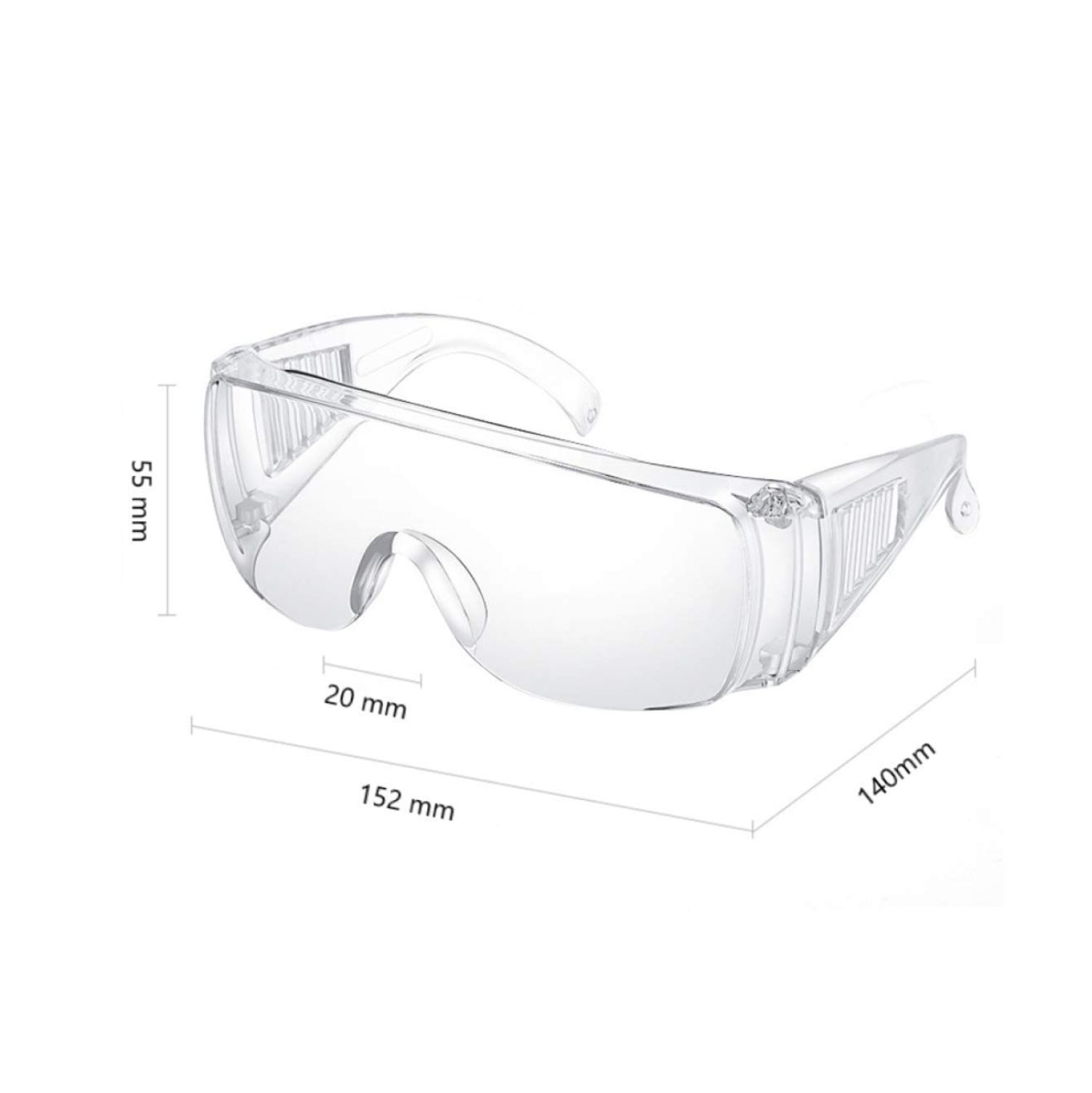 Protective eye wear size:14cm x15.2cm x5.5cm. Polycarbonate wraparound frame for impact resistance, with built-in nosepiece for comfortable, secure fit.
