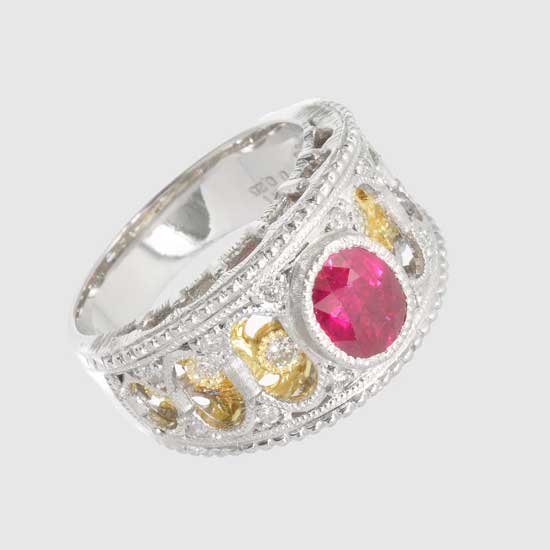 This is a Pt900 platinum finger ring that is accented with colorful stones for added beauty. It is finely crafted with exquisite details. This finger ring is surely an ideal addition to complete your jewelry box.