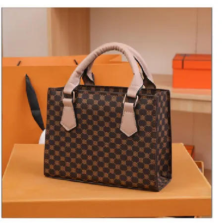 Elevate your everyday style with the structured 'Victoria' tote handbag, designed to bring a touch of classic, iconic pattern-work to your daily ensemble. Each bag is crafted with a firm, rectangular silhouette and features a sophisticated monogram-inspired pattern printed on durable material, instantly providing a high-fashion, polished look. Available with contrasting trim and handles in classic tones like black, rich brown, and soft beige, these bags are the perfect accessory for adding structure and luxury to your office or casual wear.