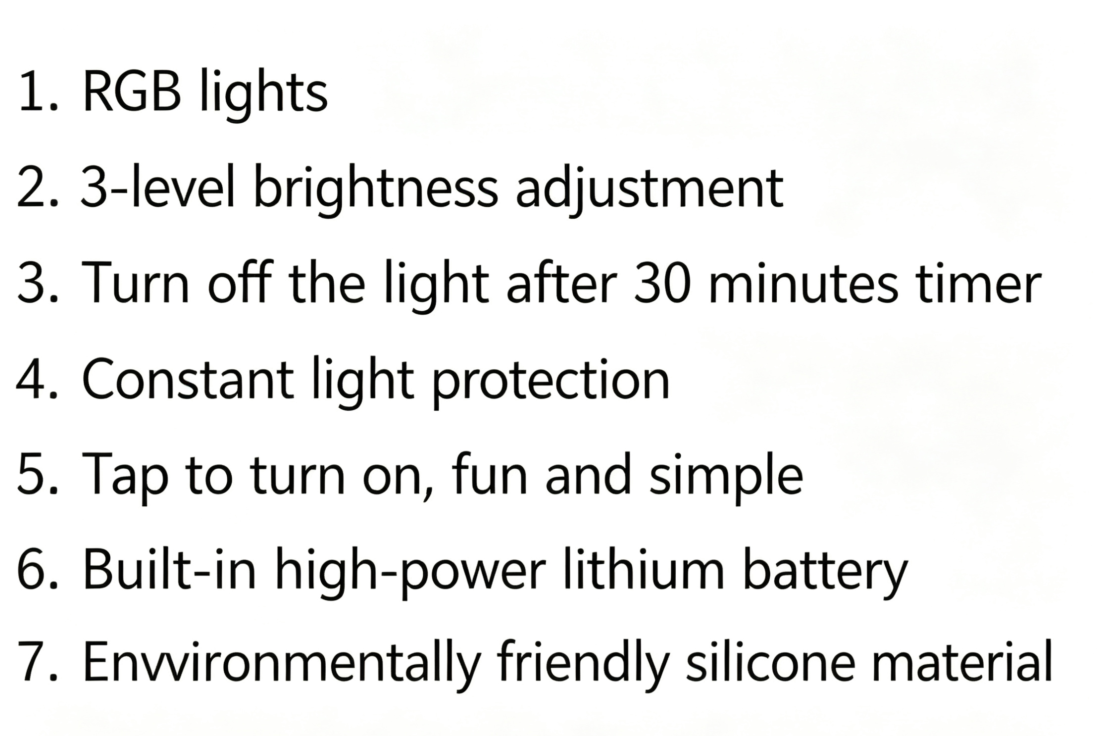 - RGB Color Changing: Vibrant multi-color light modes to set a playful or relaxing mood.