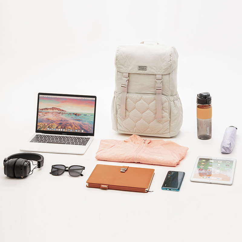 This backpack is made of soft and eco-friendly taslon fabric, with quilted design, puffy feeling, suitable for women travel and daily work.