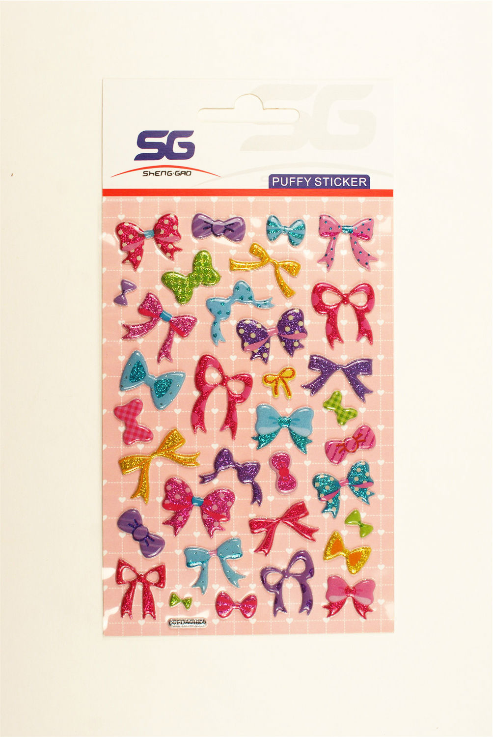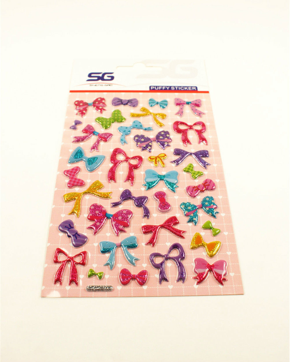 The showcased sticker pad features puffy sticker of differnt bowknots. The bowknots come in a playful style in vibrant colors. This beautiful sticker pad is an ideal gift for your kid.