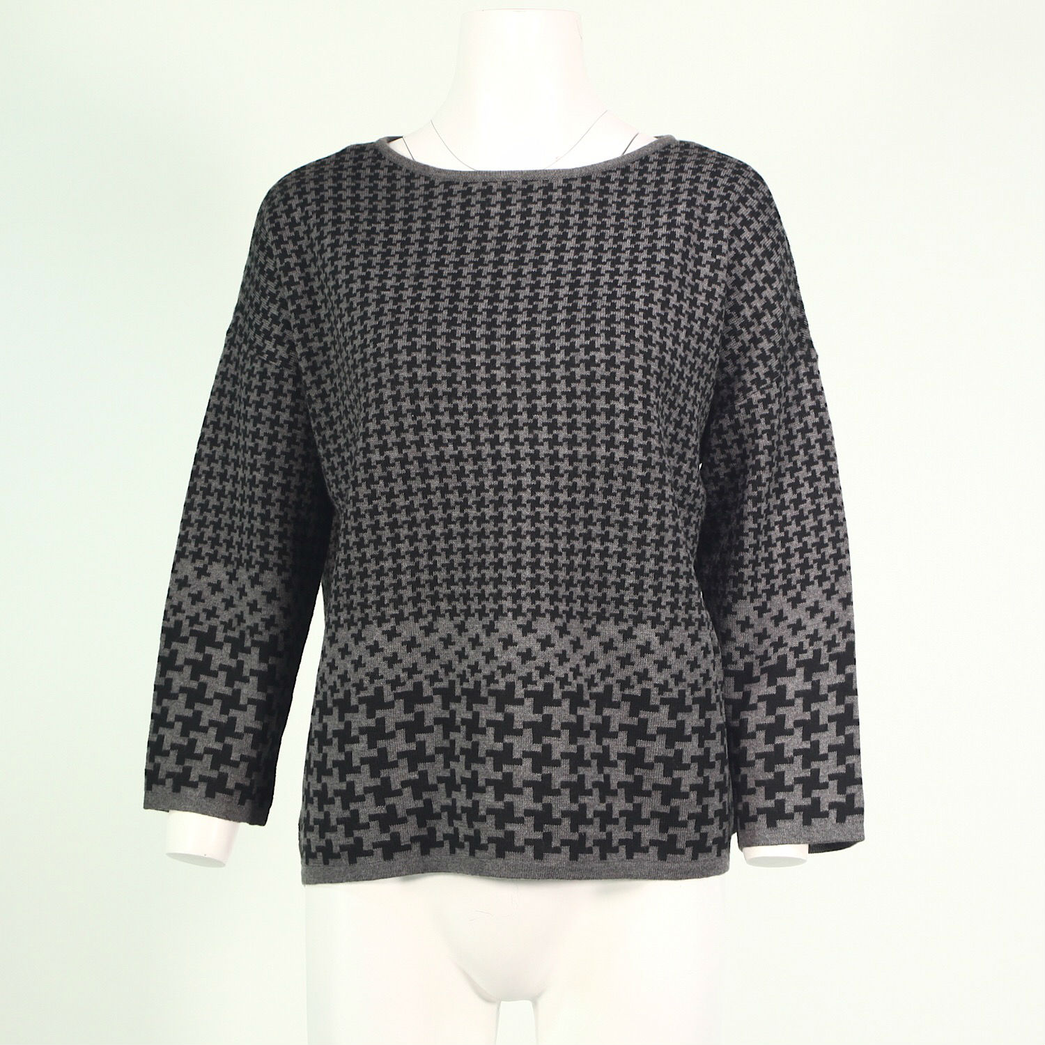 • 100% Acrylic, Machine wash available, no steam, colors: black an grey, crew neck