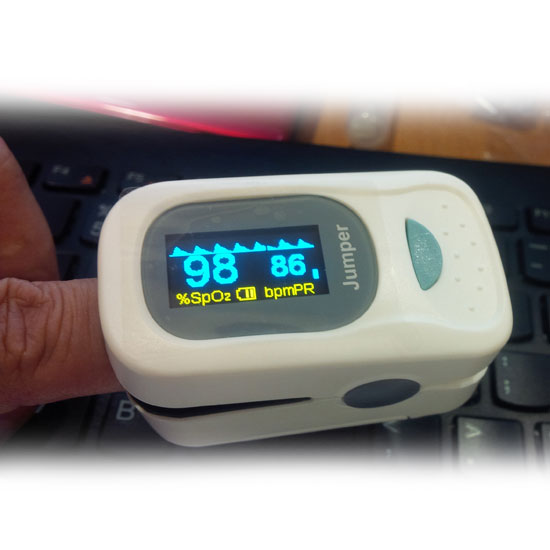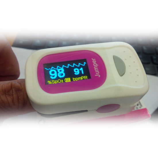 Clinics can measure SpO2 and pulse rate accurately SpO2 and PR display, PR waveform and barograph display.