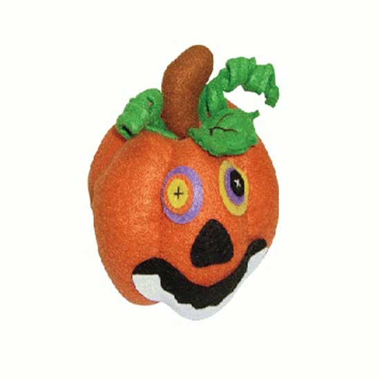 This pumpkin ornament amuses you with a mischievous face. The leaves on its top are deliberately scrolled to make a funny hairstyle. The pumpkin makes an amusing ornament for your Halloween decoration.