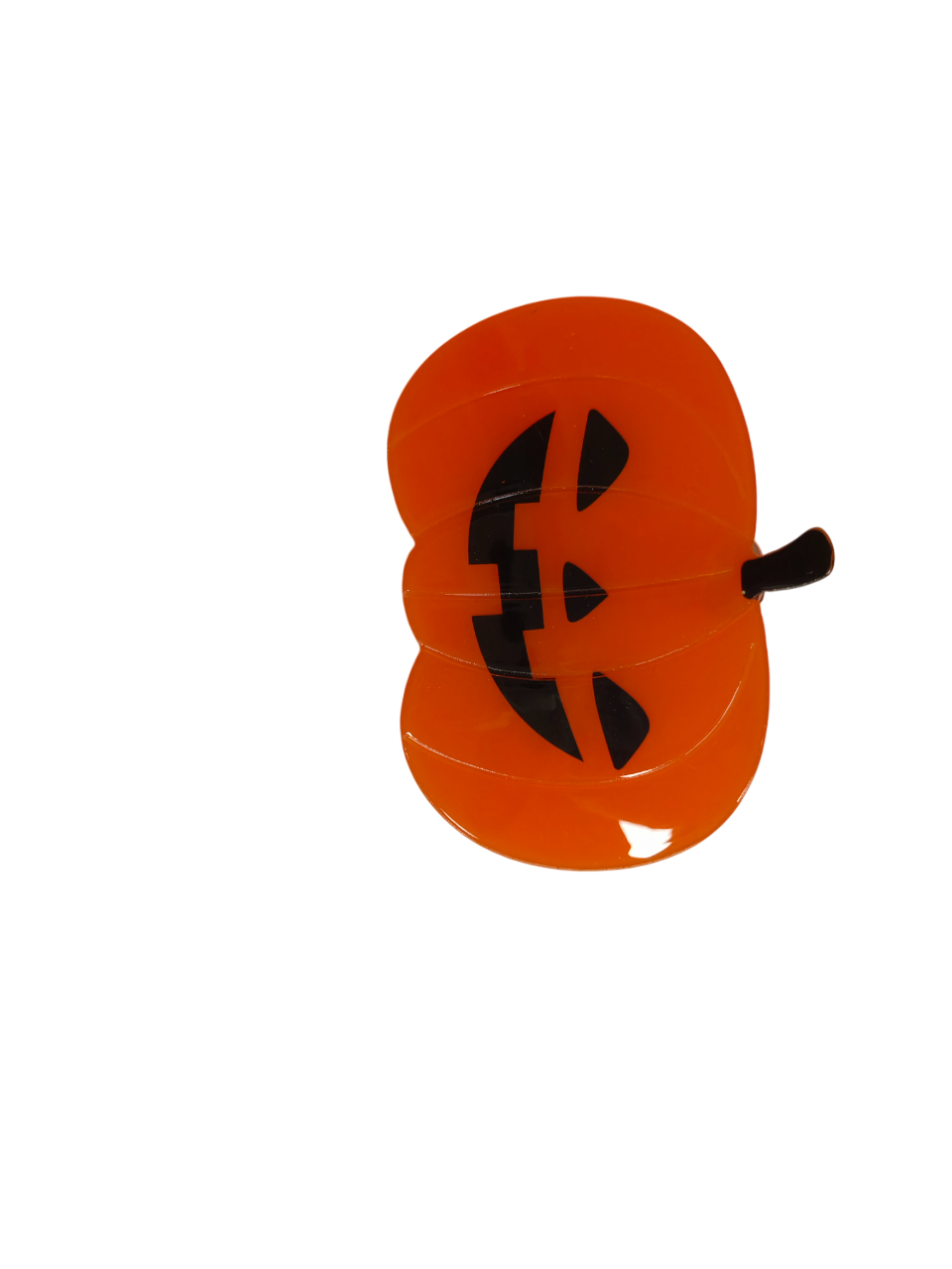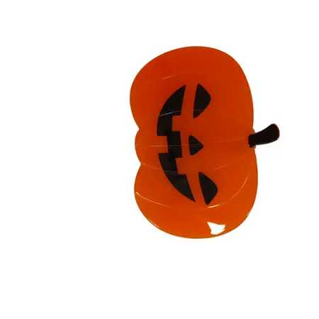 This hair clip is inspired by pumpkins, which are strongly associated with Halloween. Pumpkins are iconic symbols of the spooky season, often carved into jack - o' - lanterns with their characteristic triangular eyes and wide - grinning mouths. The design of this clip captures the essence of a jack - o' - lantern, aiming to bring a festive, seasonal touch to hairstyles. It appeals to those who love Halloween and want to incorporate holiday - themed accessories into their look.