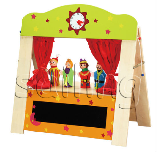 Put on a great puppet show with your siblings on the next family gathering with this puppet theater. Made to last with solid timber, the puppet stage features a fully painted frame with curtains attached at the sides to cover up the stage when you are busy doing preparations at the backstage. Just put on the well-groomed puppets on your fingers and hide your head below the table and let the show begin.