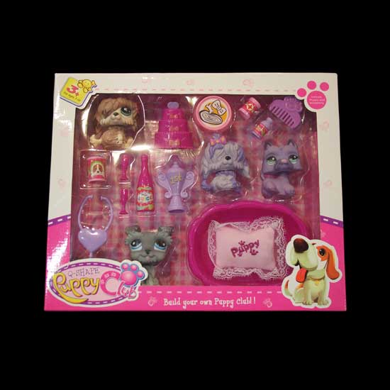 This puppy club toy set includes four dog figurines, a comb, a pillow, a bath-tub and other accessories. Each piece is meticulously crafted with delicate details in vibrant colors. This lovely toy set is sure to give your kid hours of fun.