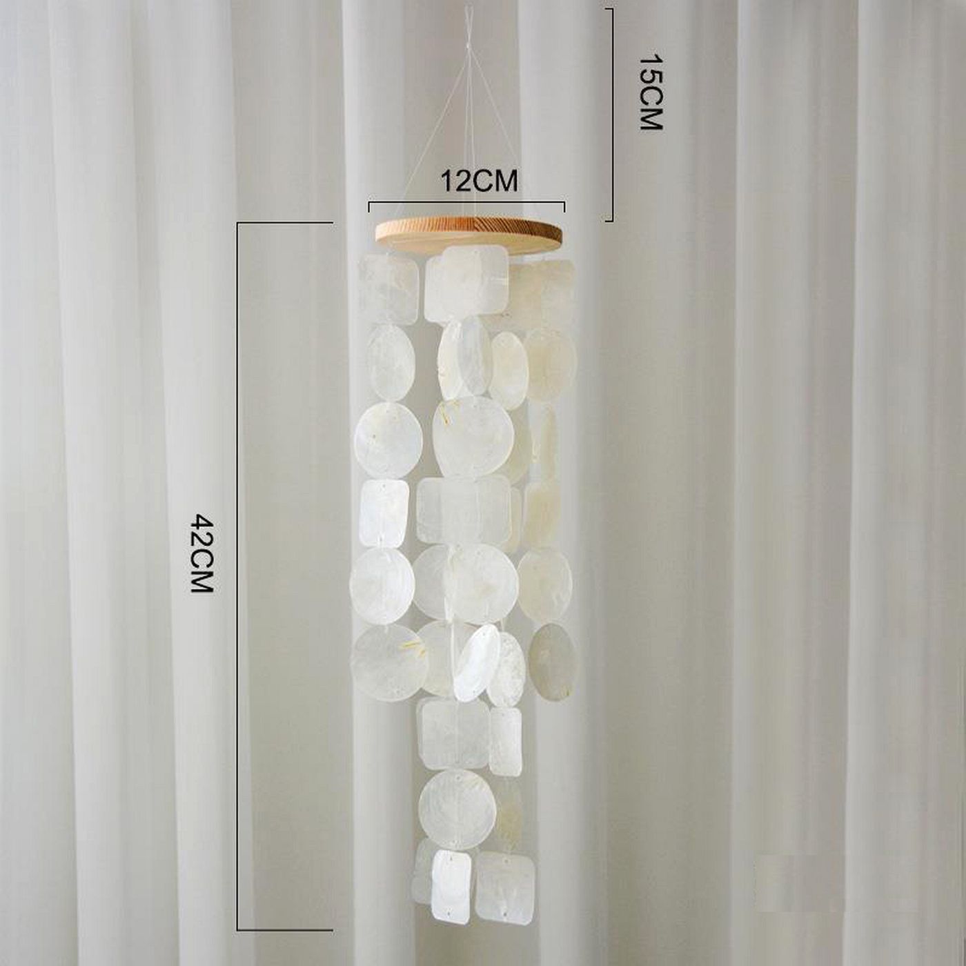 As shown is a pure color wind chime with shell parts material.