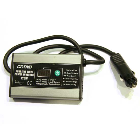 Displayed here is a pure sine wave power inverter. It features a digital display for easy viewing of readings. This power inverter is suitable for in-car use.