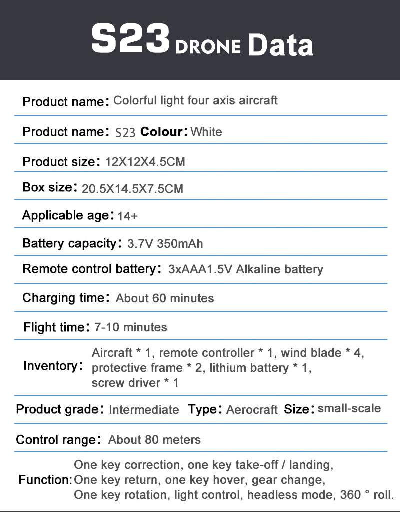 PureToy S23 Remote Control Drone with colorlight four axis aircraft
