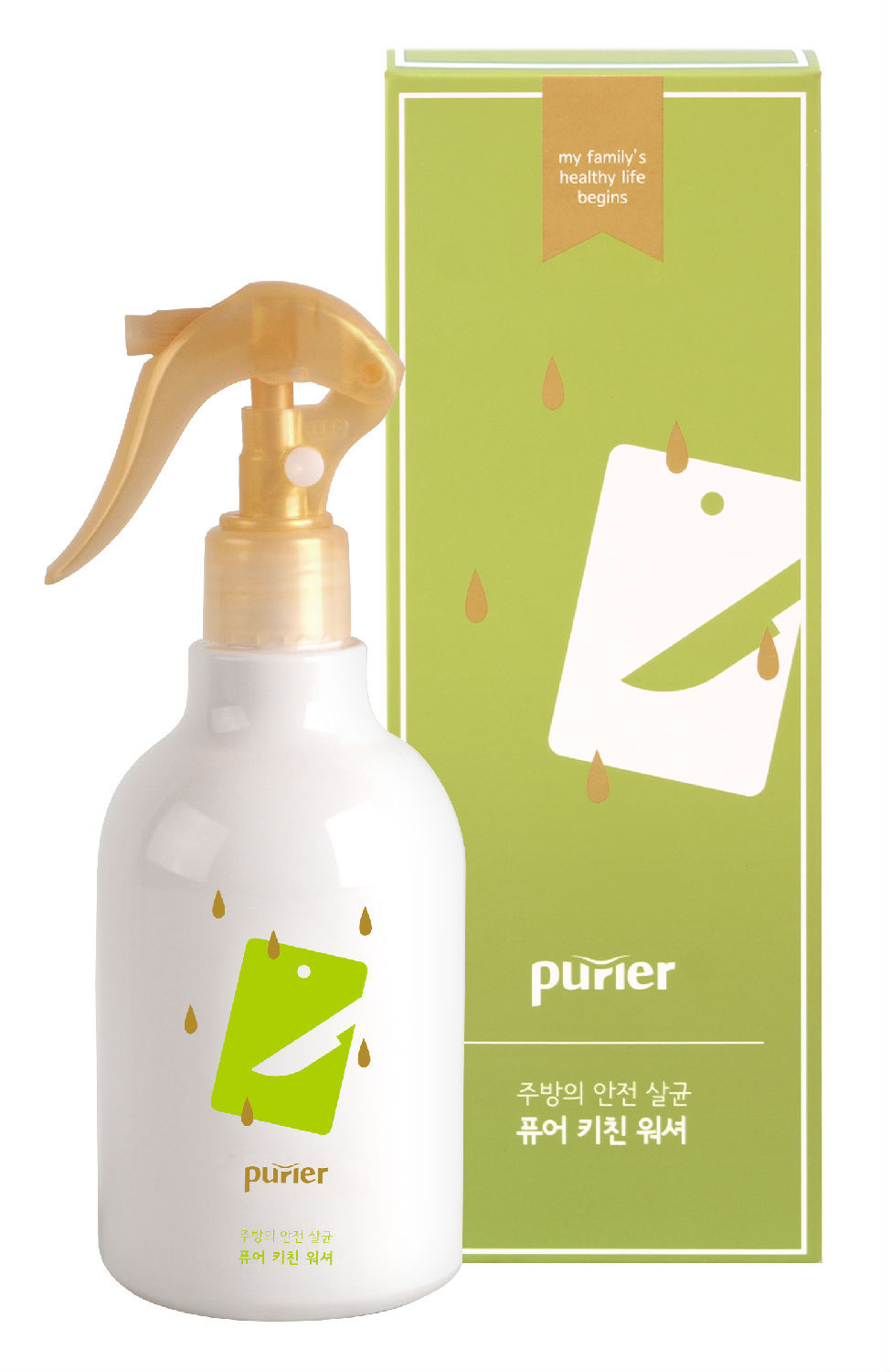 Purier kitchen spray is sterilizing water specialized in kitchen cleaning that eliminating 99.99% of various food poisoning germs, E. coli, and salmonella on the surface of kitchenware.