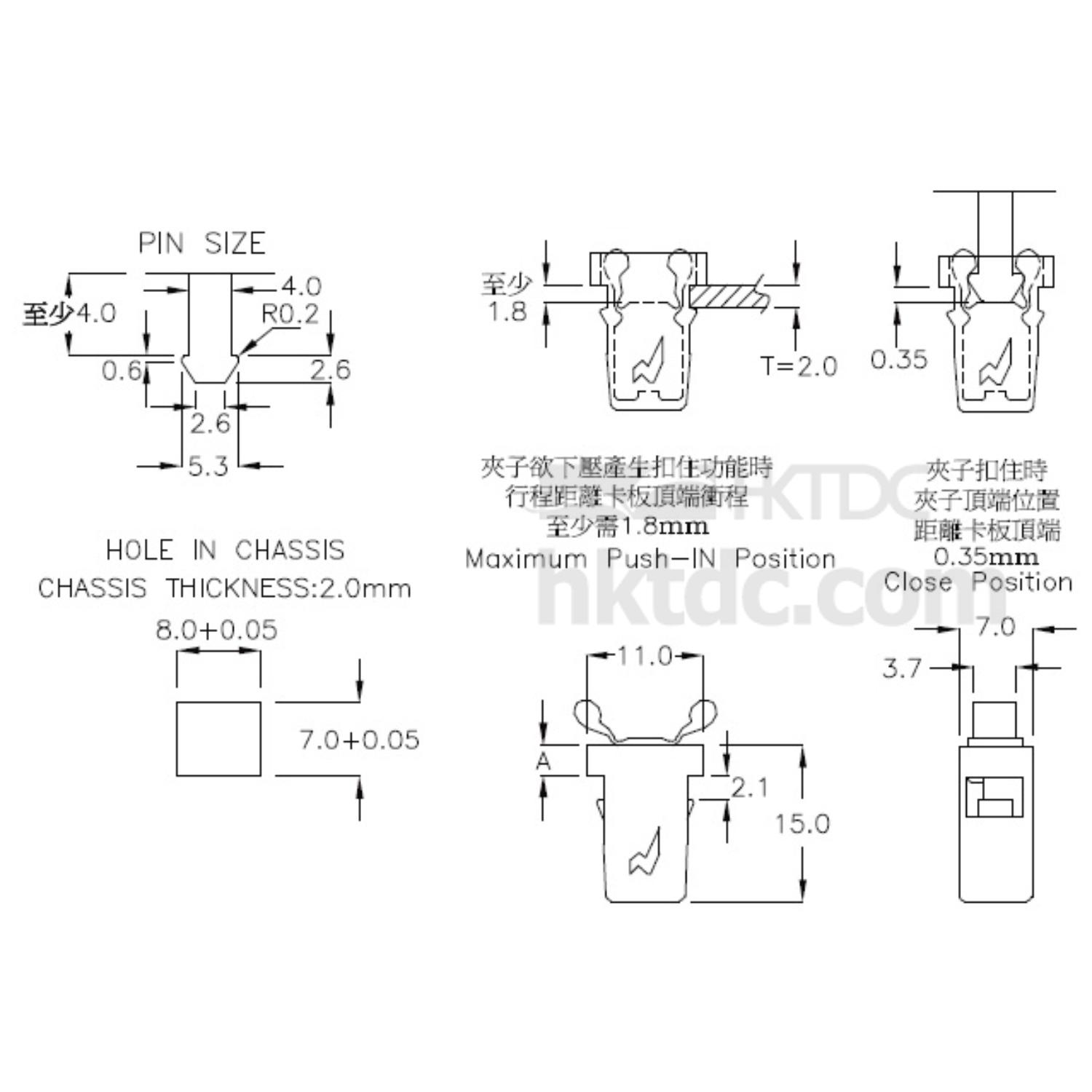 • Used with push latch as a lock for knobless doors on TVs,VCRs,etc.
