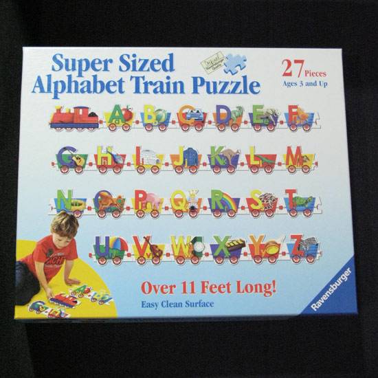 This is a set of alphabet train puzzles for kids. There are 27 pieces in total, which can be made into an alphabet train of over 11 feet long.