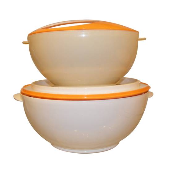 These pyramid casseroles come in 1.8 and 3.00 liters capacity. They are made of plastic. They can keep food hot for few hours.