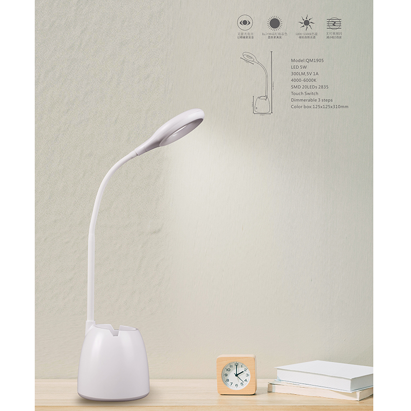 Model: QM1905 LED DESK LAMP WITH PEN HOLDER, 3-WAY TOUCH SWITCH, FLEXIABLE GOOSENECK, ANTI-BLUE LIGHT