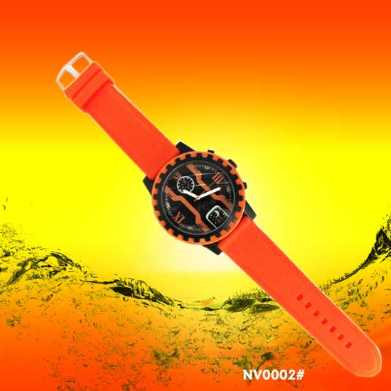 This quartz alloy watch exhibits a sporty appearance in bold bright orange. The black and orange watch case and bezel look very energetic and youthful. The water-resistant design serves to enhance the function and practicality of this timepiece.