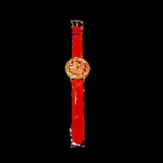 - Red leather strap.
