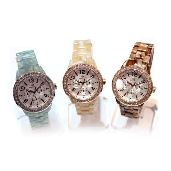 These quartz analog watches feature an alluring band with natural luster. They come with a three-hand round dial with three sub-dials. The sparkling Swarovski crystals on the bezel add an exquisite touch to the look easily.