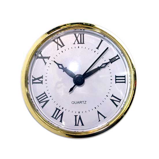 This quartz clock comes with a round white dial with roman numeral hour markers and three hands in black. The rim features a golden finish for a deluxe touch. This stylish quartz clock is a wonderful addition to any home.