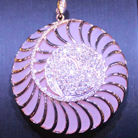 Featured here is an alluring 18k gold pendant that is designed for elegant ladies. The centerpiece of this pendant is a beautiful piece if rose quartz stone, which is further adorned by loose diamonds. Add this to your jewelry collection for a touch of uniqueness.