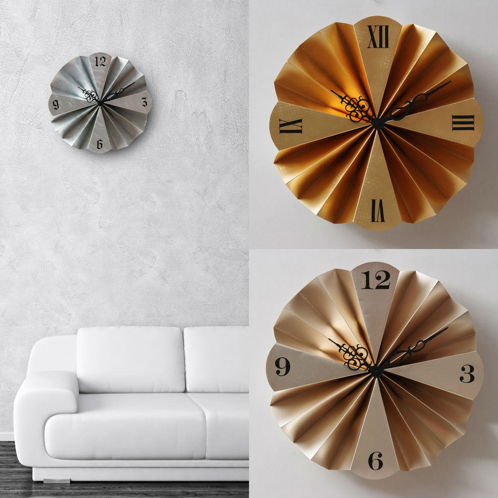 • The Fan Wall Clock, Snowflakes Wall Clock and Cross Wall Clock are styled with a folded clock surface for an added touch. It features a quartz analog design for accurate time measurement and reliable performance. This stylish clock matches well with most modern room decors and makes an ideal gift for your friends.