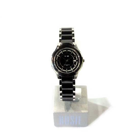 This women's watch is finely made with the combination of stainless steel and ceramic in a bold black finish. Running on a high-precision quartz movement, it comes with a round case and a two-tone dial. This simple yet stylish watch is ideal to go well with your fashion wear.