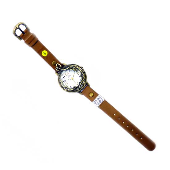 This ladies' stylish watch features a high-precision quartz movement with three hands and Arabic numeral hour markers on the dial. The round case features golden-tone swirling floral embellishment on the bezel for a sense of striking effect. The brown PU watch strap makes it an ideal wristwatch for your choice.