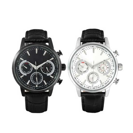 This quartz watch features a fashionable round dial with three hands and three sub-dials. The case is constructed from alloy and stainless steel for sturdiness. The shiny PU/genuine leather strap promises maximum comfort for long time wear.