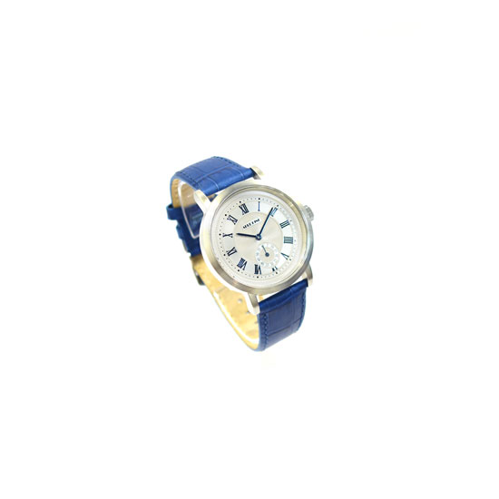 - Blue leather strap.