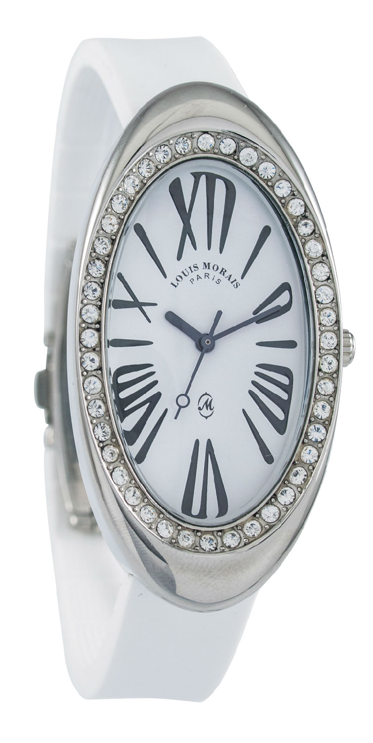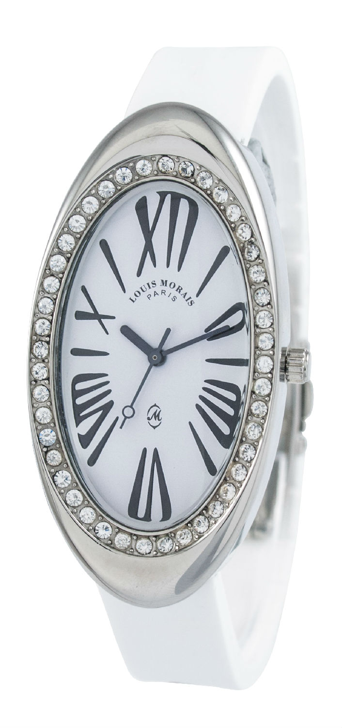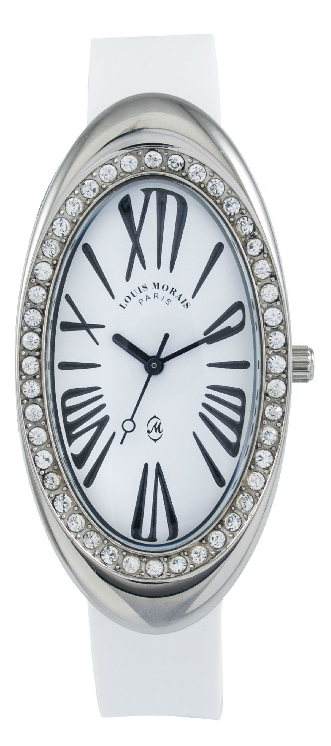 Glam up your look with this sophisticated timepiece. This timepiece boasts a classic look with its beautiful oval analog face. The oval dial is crafted with roman numerals housed with a crystal-embellished stainless steel case. This timepiece is completed with a silicone strap for comfortable wearing.