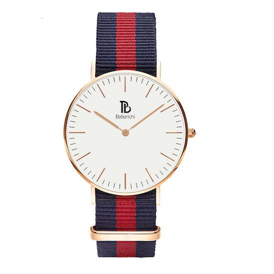 Recognized for its indelible flag-inspired design, this NATO watch prides itself on its laidback yet sophisticated look. The round polished case bestows a simplistic face ran with only stick-style hour and minute markers plus two watch hands. Paired with an ageless NATO strap, this watch stands out with its elegant color combination.