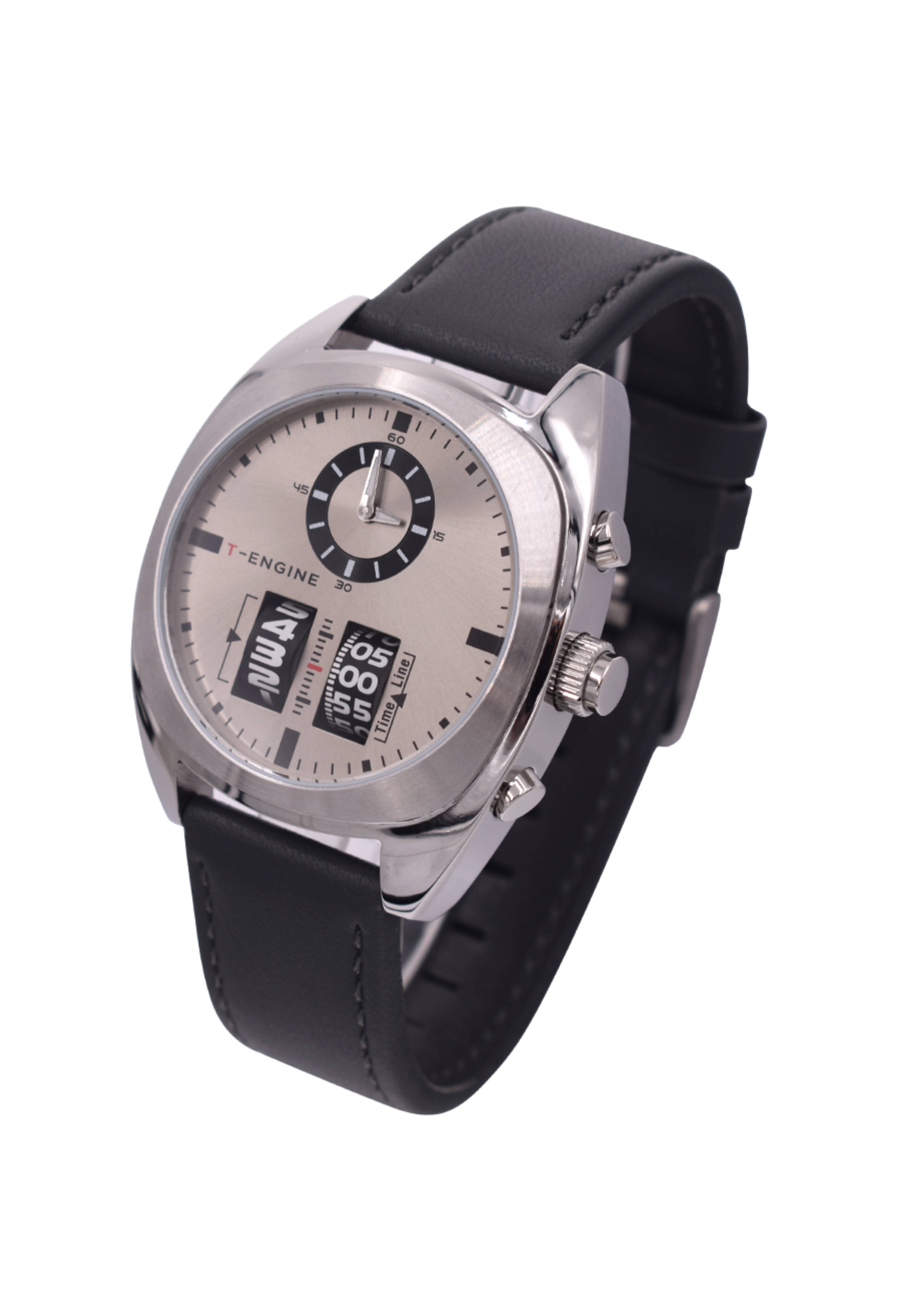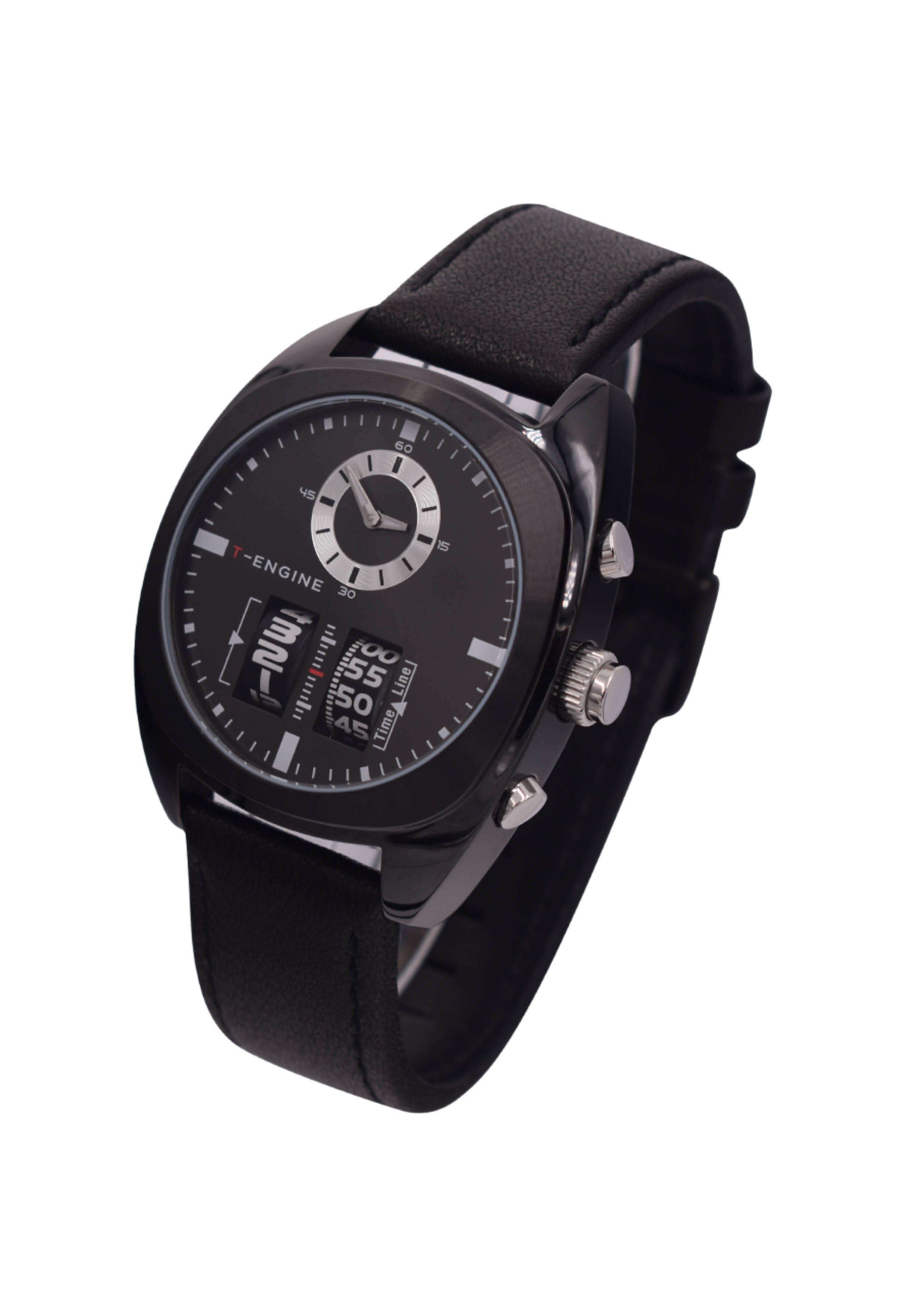 • Analogue hour Minute hands. Hour, minute roller. Dual time