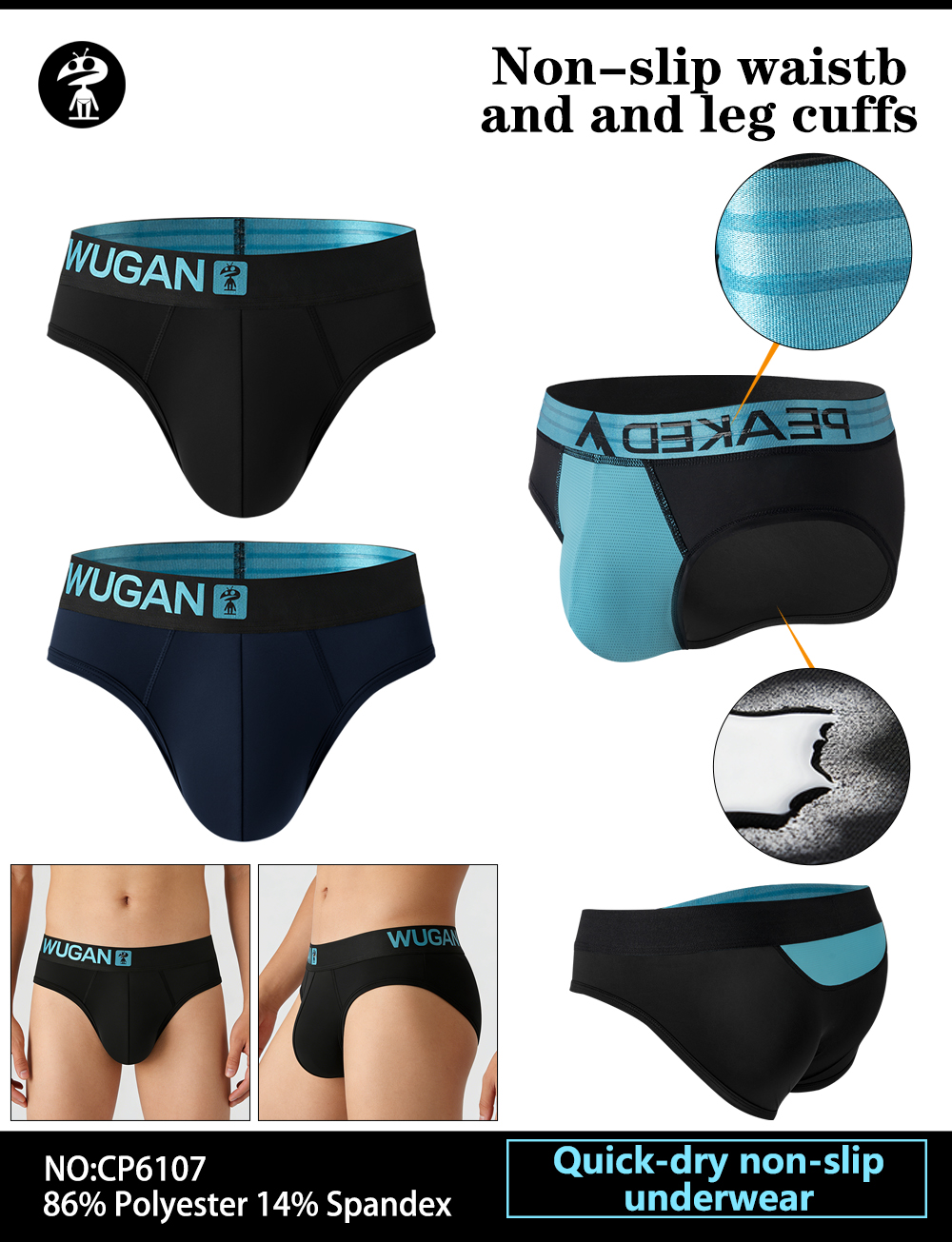 Quick-dry non-slip men's briefs