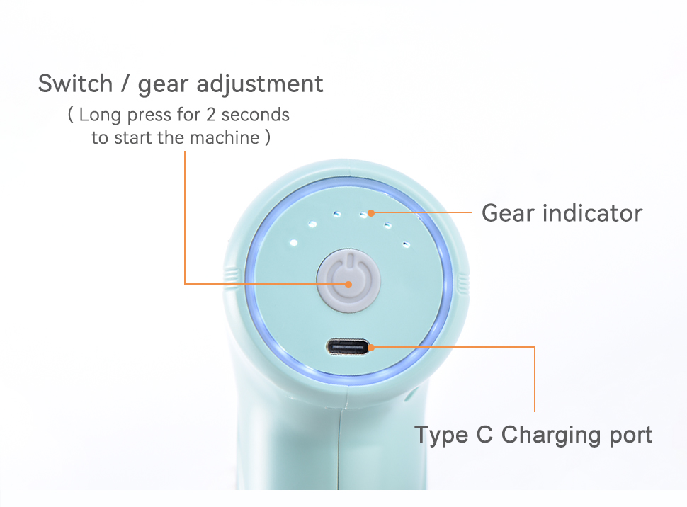 4.6 speeds percussion function with LED indicators.