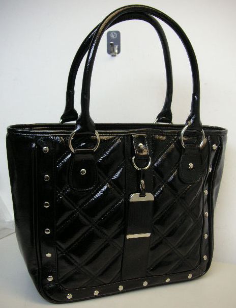• Quilted crinkle embossed soft patent semi-PU handbag.