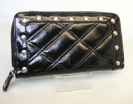 • Quilted crinkle embossed soft patent semi-PU wallet.