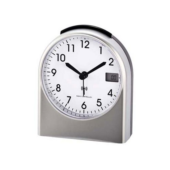 This radio-controlled alarm clock comes with clear numeric hour indicators for easy time reading. The alarm clock receives reliable coded time signals and provides accurate time. The clock is designed with a light source and a snooze function.