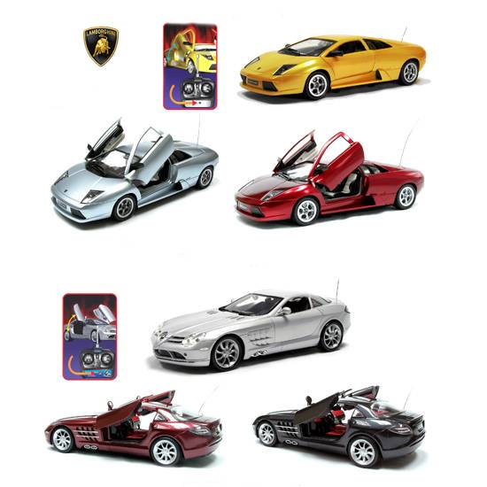 These are scale cars that are remote-controlled. These cars are made of light metals and plastics so they can run quickly. They are made according to the appearance of real cars.