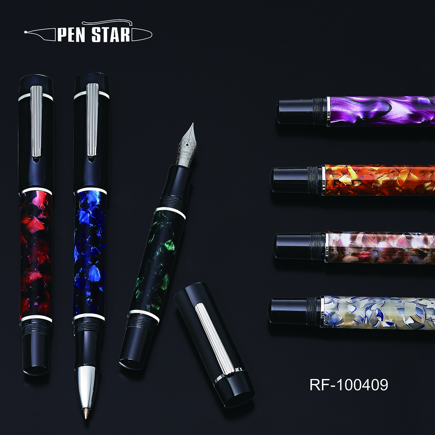 Pen Star Marbling acrylic Roller & Fountain pen. Beautifully balanced design adds a touch of modern class to your daily routine. It gives high precision and exceptional writing comfort for every occasion, coupled with a gorgeous design. It’s a best writing tool, lightweight and durable enough to be a daily-use pen.