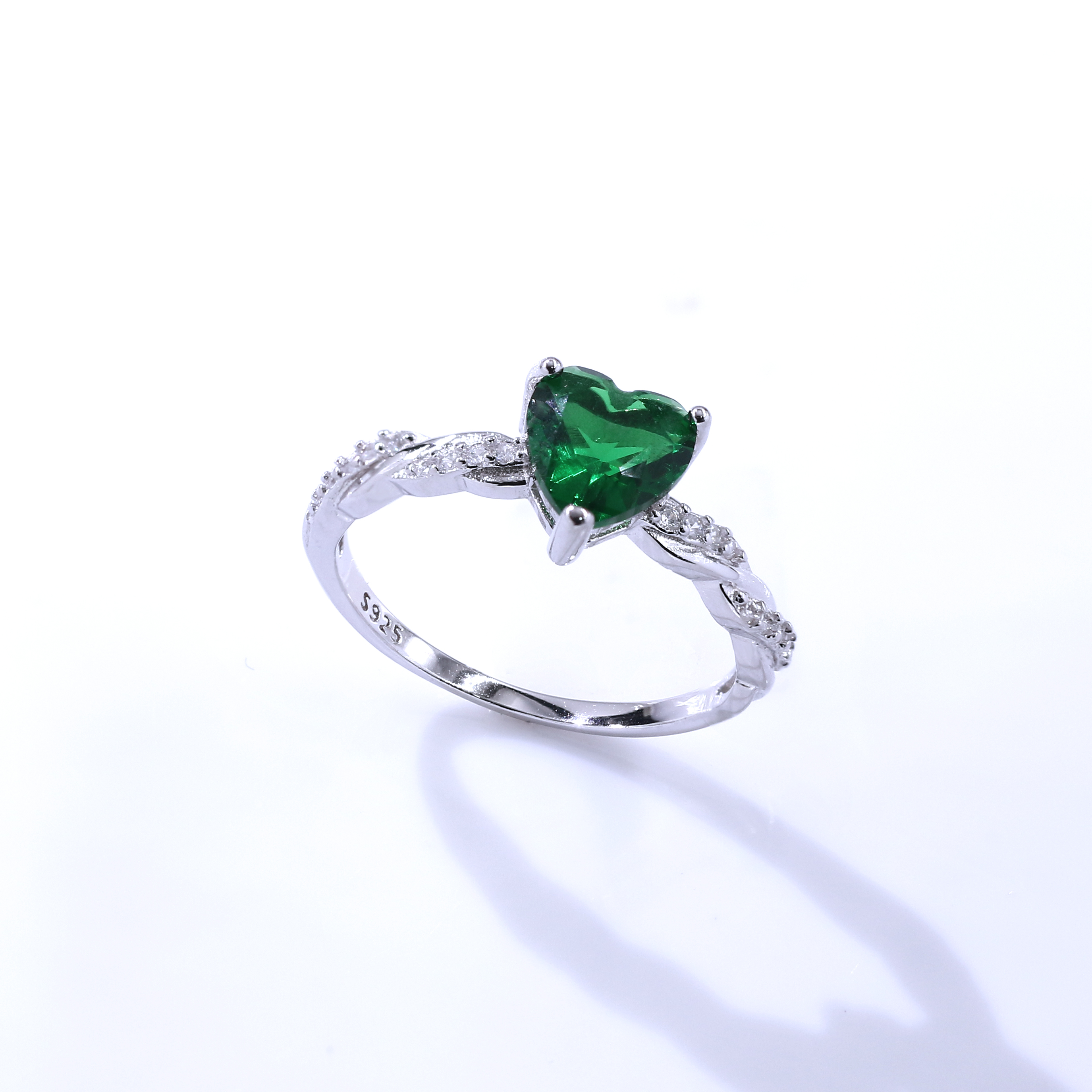 Product Name: Sterling Silver Green Heart CZ Ring / Love Heart Cubic Zirconia Ring