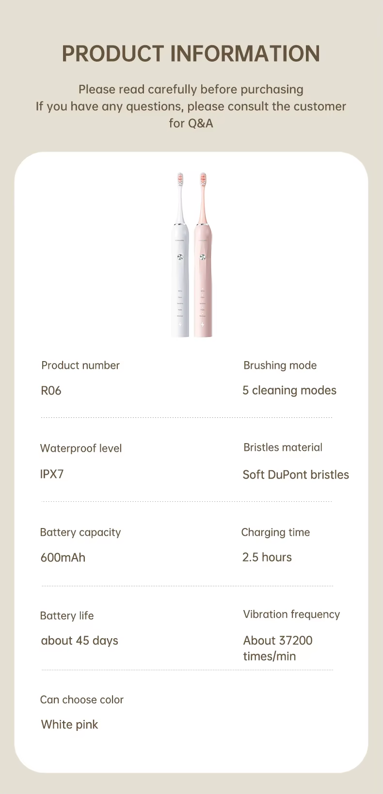 Upgrade your daily oral care with the R06 High-Value Electric Toothbrush – the perfect balance of performance, affordability, and innovation for a healthier, brighter smile.
