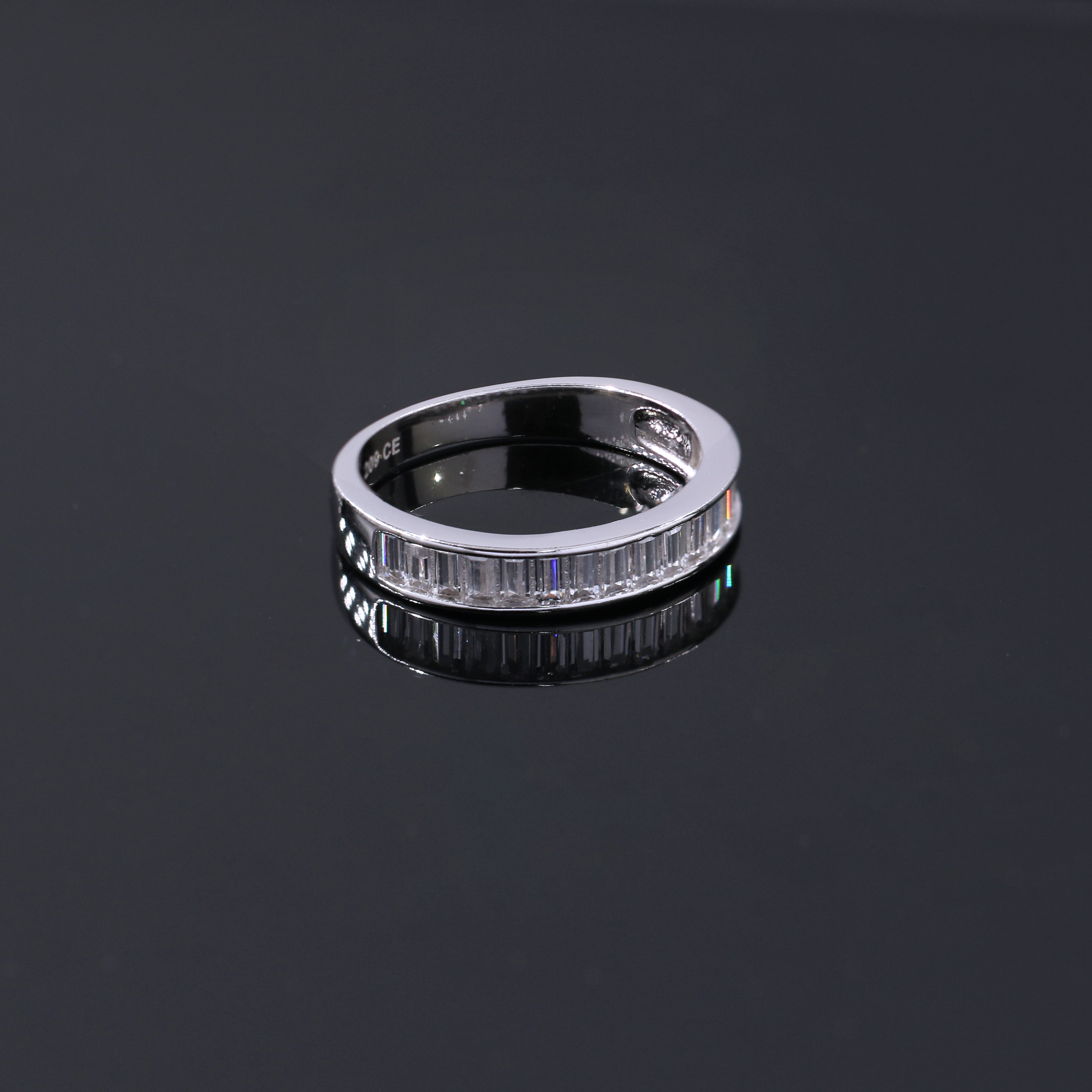 Dazzling Baguette Cut CZ Stones: The meticulously cut baguette cubic zirconia stones create a continuous and seamless line of brilliance around the entire band. The precise facets maximize light reflection, resulting in exceptional sparkle and fire, rivaling the beauty of real diamonds.