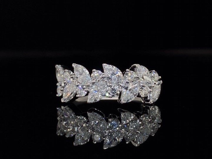 18K WHITE GOLD RING SET WITH ROUND AND MARQUISE DIAMOND