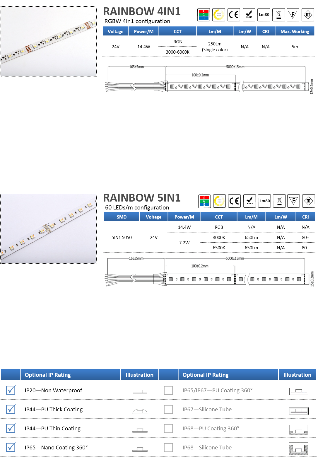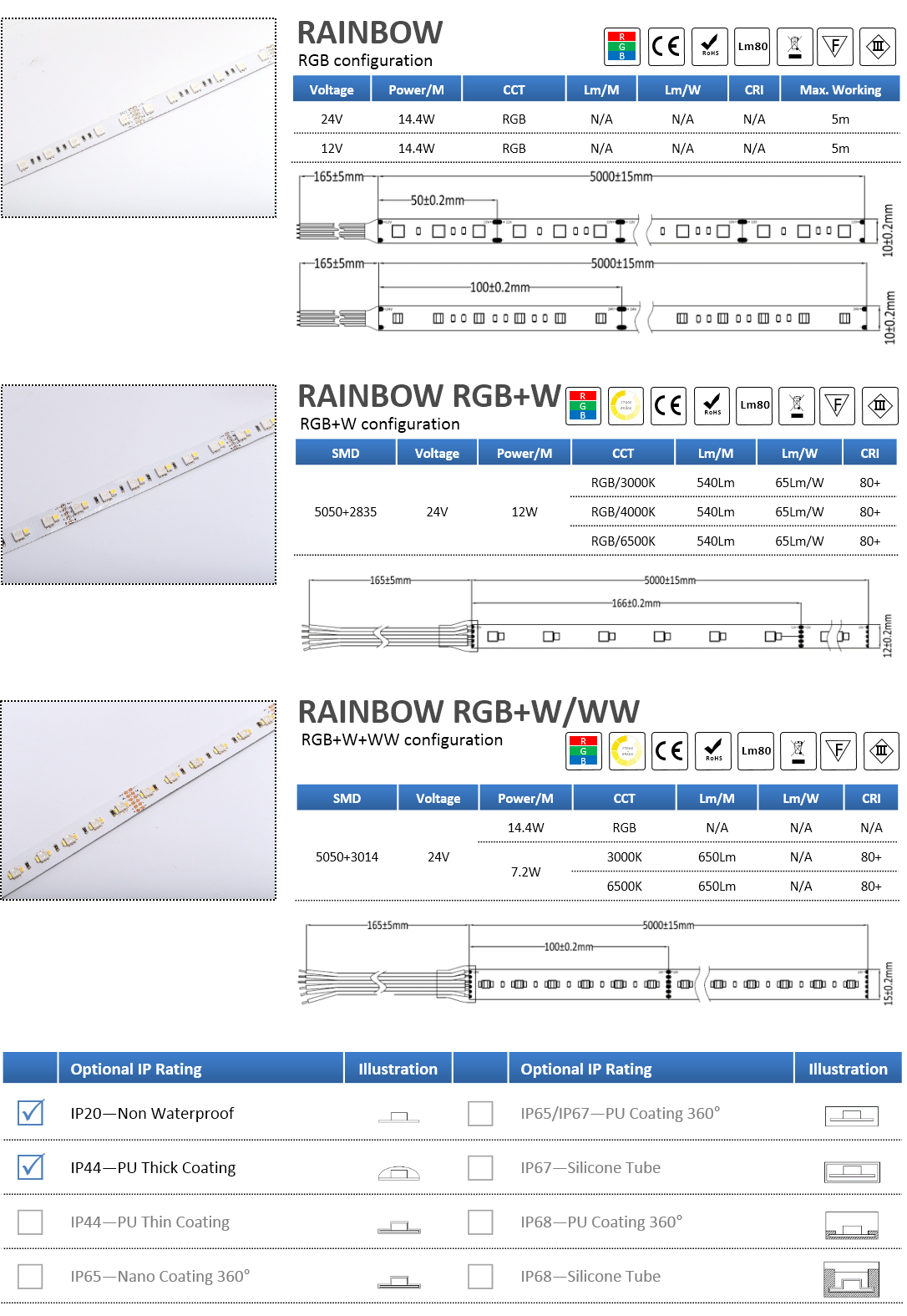 RAINBOW - RGB, RGB+W, RGB+W/WW, 4IN1 RGBW, 5IN1 RGBW/WW