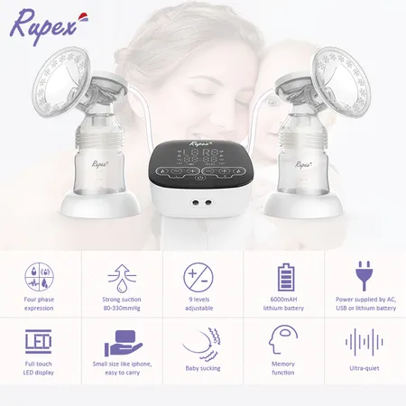 1. Soft silicone or PP breastshield, Full touch screen with LED display