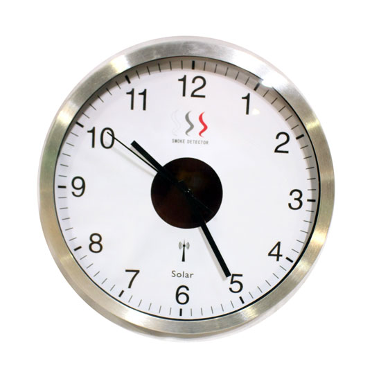The RC wall clock comes in a neat round shape. It is assembled with a polished metallic frame. This piece also runs with an efficient smoke detector.