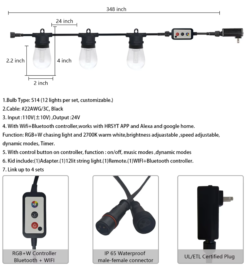 RC and APP Control Hanging LED Patio Scattering Scene Light Timer Switch RGBW 24V IP65 Waterproof for Restaurant Decoration