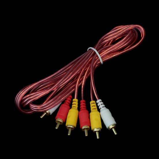 This RCA cable features 3 color-coded plugs, which connect to correspondingly colored jacks. The red and white plugs are for right and left audio channels and the yellow for composite video. The cable can be used to connect a variety of audio and video devices, such as camcorders, TVs, stereos and speakers.