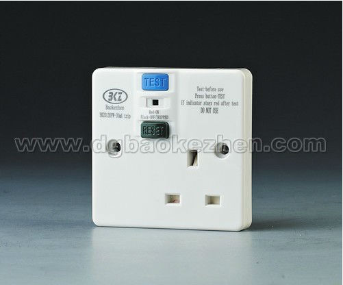 Shown here is a wall socket that incorporates a built-in residual current device for maximum protection and safety. It has two “Test” and “Reset” buttons and a status indicator making it safe and easy to use. Designed to provide protection from the risk of electric shocks and fire, this power outlet is particularly suitable for portable electrical equipment used both indoors and outdoors.